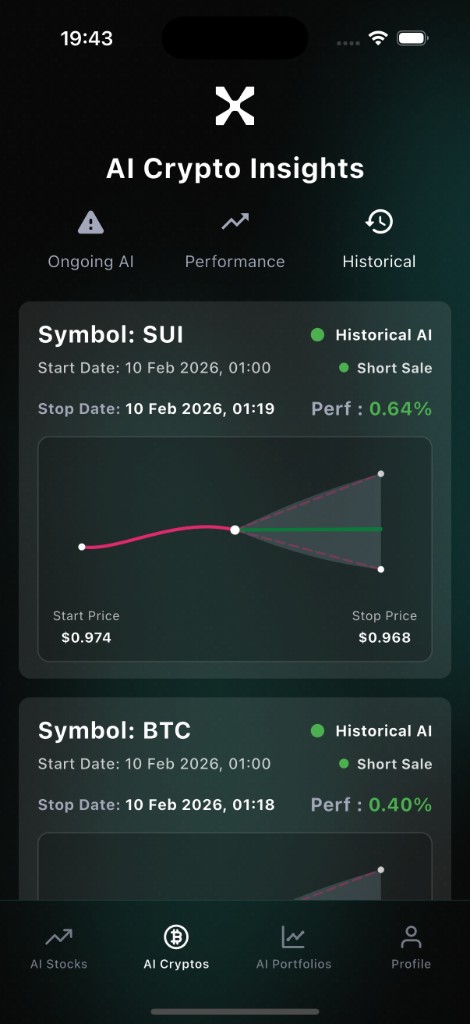 Xyrra provides AI-generated allocation models that illustrate how quantitative strategies may distribute assets across stocks and cryptoassets within a simulated environment. These models are based on algorithmic analysis of market data and are designed to support financial education, research, and strategy exploration.